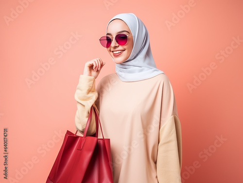 © Shanorsila, Obraz premium Potrait of young muslim women whilte shopping.