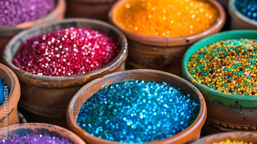 Fototapeta premium Pots filled with vibrant happy colored granules