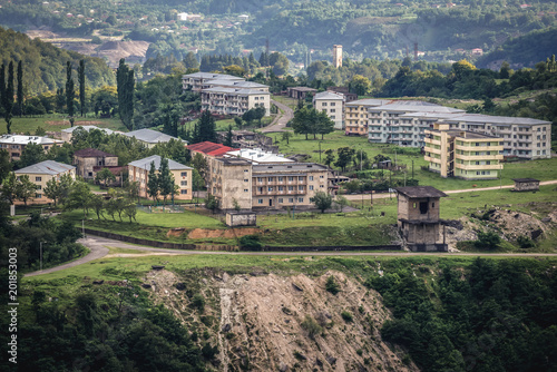 Fototapeta premium Potskho Etseri village near Inguri hydroelectric dam on the Inguri River in...