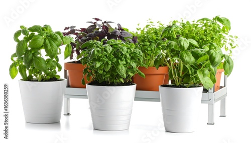 © Bismillah, Fototapeta premium Potted herbs on a metal rack