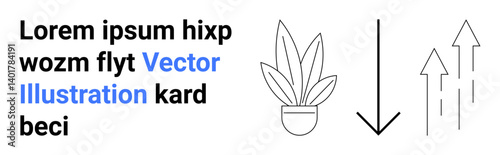 Fototapeta premium Potted plant and minimal arrows forming abstract ideas of growth, direction,...