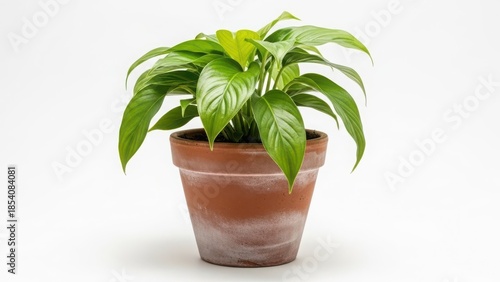 © Shipna, Fototapeta premium Potted plant with green leaves in terracotta pot