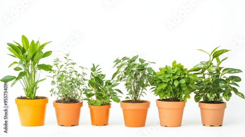 © Damerfie, Obraz premium Potted Plants Collection on White Background