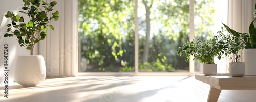 Fototapeta premium Potted plants illuminating minimalist interior with natural light