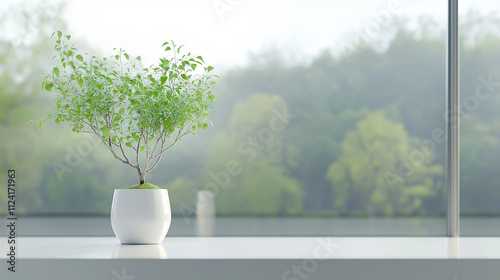 © wipawan, Fototapeta premium Potted plants on window and white computer. Houseplants in pots on windowsill. Home decor concept. Modern houseplants . Minimal creative home decor concept , work space,home office,computer,background