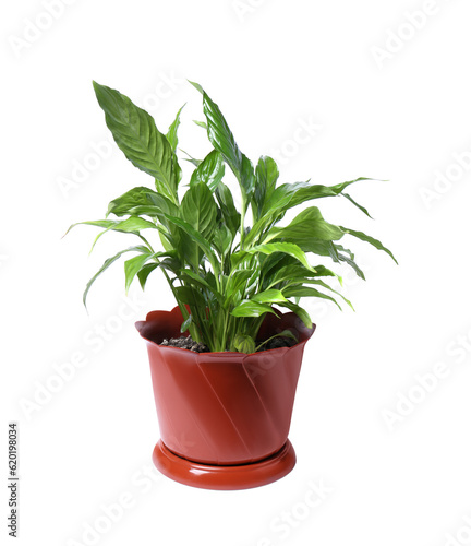 Obraz premium Potted Spathiphyllum plant with green leaves isolated on white