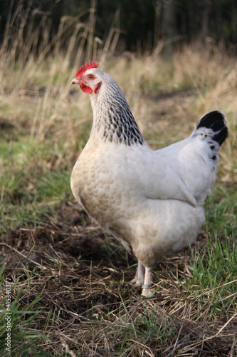 © tichodrome, Fototapeta premium Poule blanche dans le verger