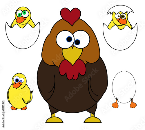 © Kevkel, Fototapeta premium Poultry Cartoon Set - Isolated On White