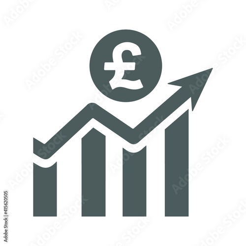 © hr-gold, Obraz premium Pound sterling bar chart icon. Gray color vector graphics.