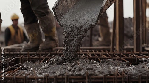 Obraz premium Pouring concrete foundation construction site worker building cement mix industrial architecture design job