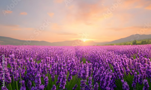 © Sommit, Fototapeta premium POV View of Serene Lavender Field in Full Bloom at Sunset