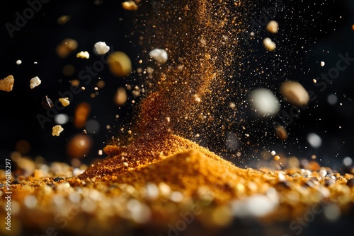 Naklejka premium Powdered spices against black background with generative ai