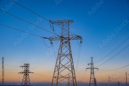 © yelantsevv, Fototapeta premium power lines against the background of the twilight sky
