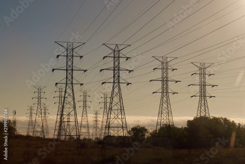 © Judd Irish Bradley, Fototapeta premium power lines and pylons at sunrise