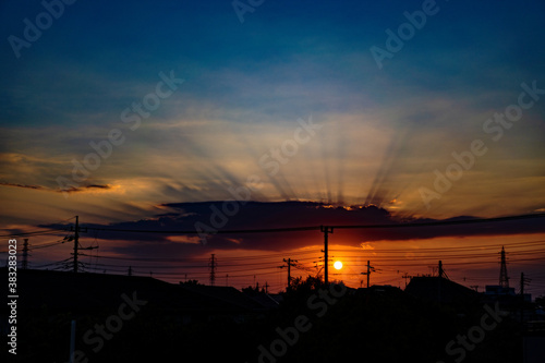 © ryuichi niisaka, Fototapeta premium power lines at sunset