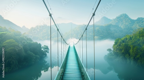 © MAY, Obraz premium Power lines crossing over a bridge, showcasing the infrastructure needed to transport electricity across vast distances.