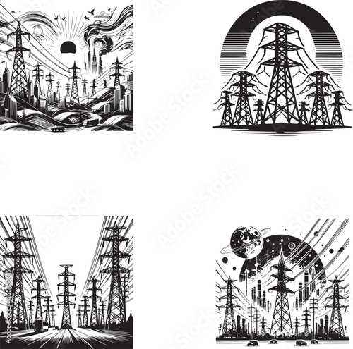 Fototapeta premium Power Lines Silhouette - Utility Poles and Electrical Grid Design