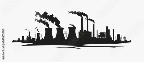 Obraz premium power plant emitting smoke against a grungy urban backdrop at night