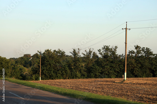 © Сергей Луговский, Fototapeta premium Power poles in a field near the road