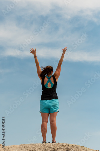 © kellyvandellen, Obraz premium Power Posing Against Blue Sky