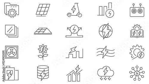 © RI Rafiq, Naklejka premium Power Purchase Agreement line icon set. tube, roof, call, broadcasting, glass, note, engage, haircut, chemical, trade, electricity supply. customizable line icon set. UI thin line icon pack.