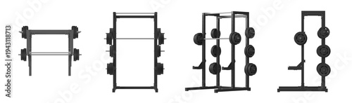 © changnam37, Fototapeta premium Power Rack Multiple Views, Black, 3D Render Isolated on White Background
