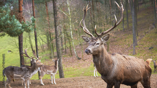Fototapeta premium Powerful adult red deer stag in natural environment autumn fall