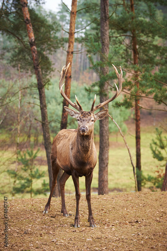 Fototapeta premium Powerful adult red deer stag in natural environment autumn fall