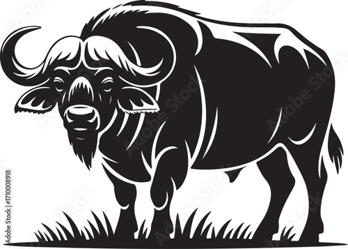 © Nurcreator, Obraz premium Powerful african buffalo silhouette standing proudly in grassy field