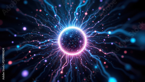 Fototapeta premium Powerful AI tech visual with a glowing sphere at its center, surrounded by...