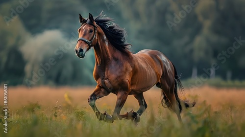 Obraz premium Powerful and Elegant Horse Running Through an Open Field