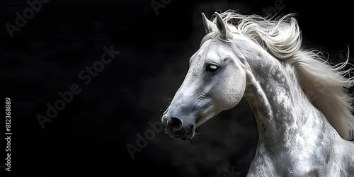 © Thares2020, Obraz premium Powerful and Graceful Silver White Stallion Rears Under Intense Studio Lighting Against Dark Backdrop
