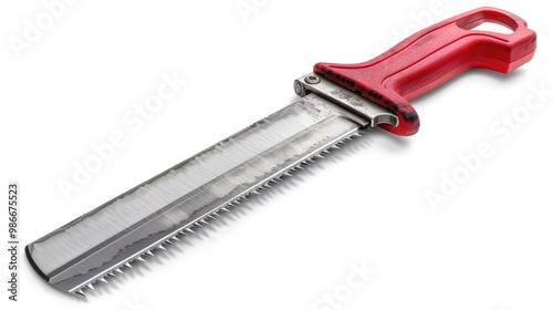 Obraz premium Powerful and sharp red metal handsaw an essential tool for heavy duty home...