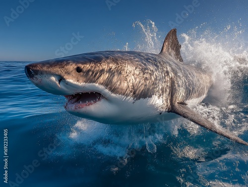 © DIAHIMAGESNEW, Obraz premium Powerful apex predator leaping from the ocean