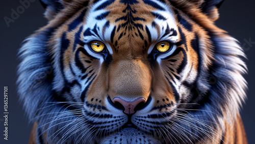 Naklejka premium Powerful Bengal tiger closeup portrait with piercing eyes detailed orange and...
