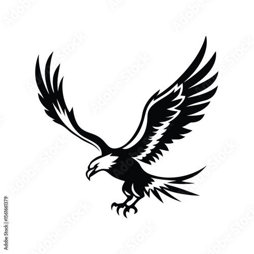Fototapeta premium Powerful black and white eagle soaring, great for logos, decals, or wildlife art. Dramatic, detailed wings in a bold design