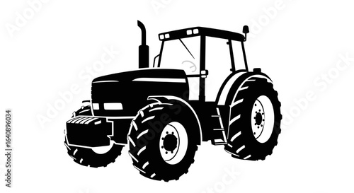© Faris, Obraz premium Powerful Black and White Silhouette of a Modern Farm Tractor.