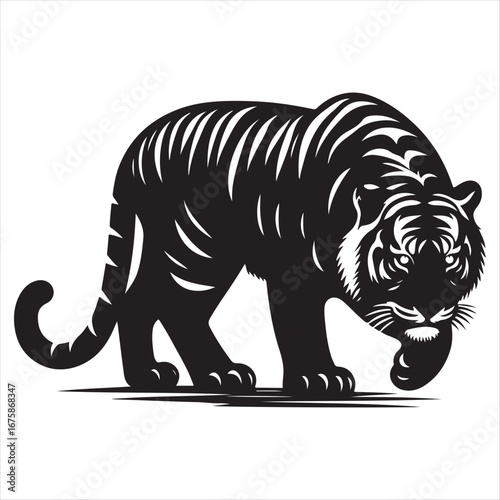 Fototapeta premium Powerful Black and White Tiger Illustration: Fierce, Majestic, and Bold Graphic Design.