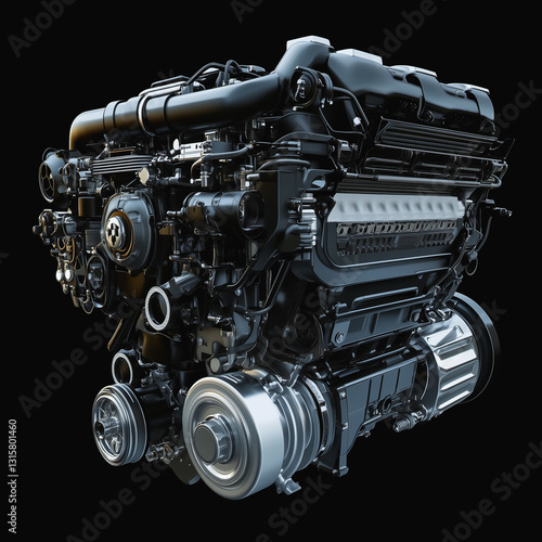 © Avalga, Fototapeta premium Powerful black automotive engine with intricate mechanical details