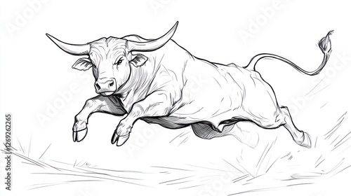 Fototapeta premium Powerful bull leaping, stylized illustration