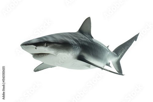 Obraz premium Powerful bull shark swimming underwater. Marine wildlife, predator.
