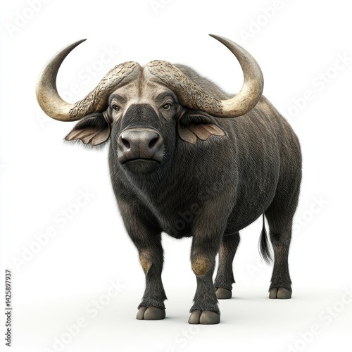 © NikahGeh, Obraz premium Powerful Cape Buffalo portrait against a plain background.