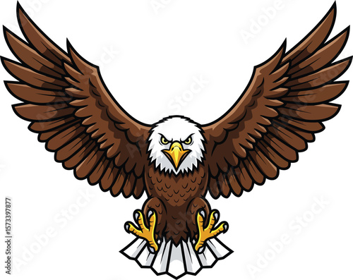 © Aly, Obraz premium Powerful Cartoon Bald Eagle Soaring in Aggressive Stance