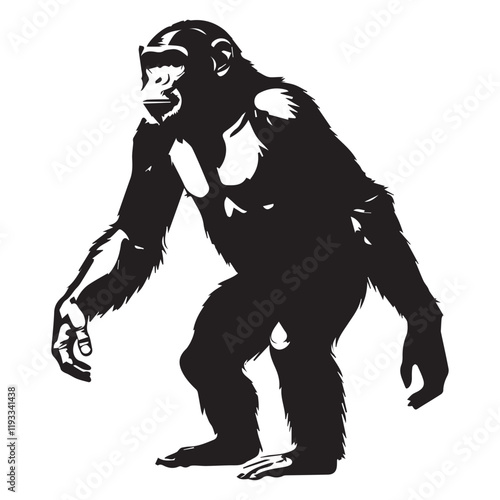© Tanver, Fototapeta premium Powerful Chimpanzee Silhouette Against a Light Gray Background
