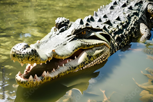 © Vishal, Obraz premium Powerful Crocodile Resting on Riverbank in Natural Habitat