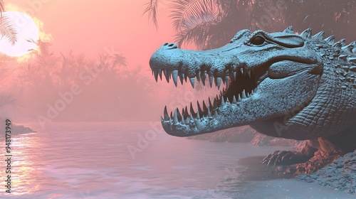 © pkproject, Obraz premium Powerful 3D Crocodile Predator with Soft Pastel Background