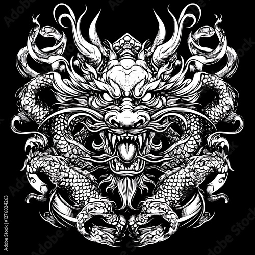 © Indri, Obraz premium Powerful Dragon Head Graphic Design
