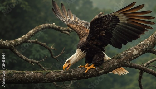 © Ludmila, Obraz premium Powerful eagle clutching a textured, weathered branch