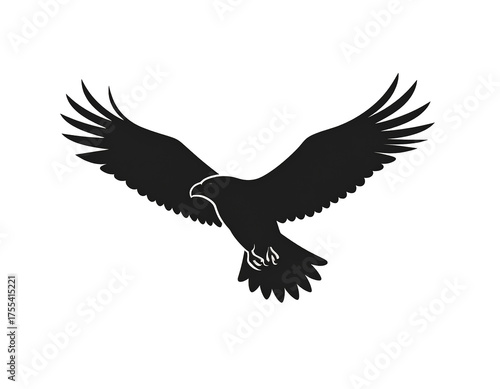 Fototapeta premium Powerful eagle flying high, elegant silhouette icon in black and white,...