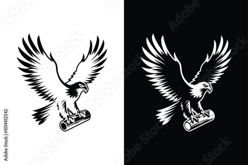 © Ali, Obraz premium Powerful Eagle Icon Minimalist Silhouette in Black And White Contrast.